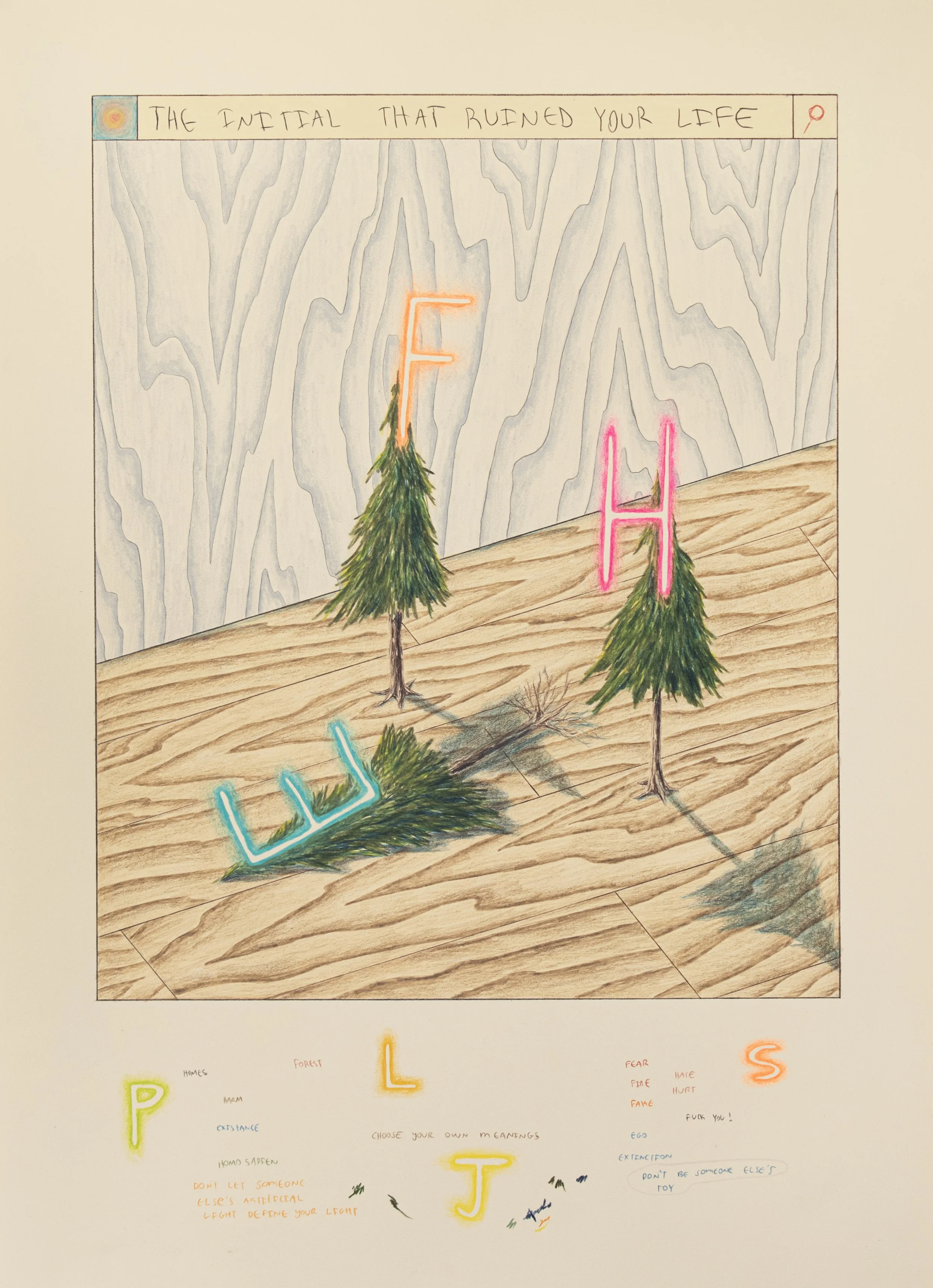 "Forget About Who You Are And Become Who You Want To Be" 2022, Colored pencil on paper, 26 x 19 in