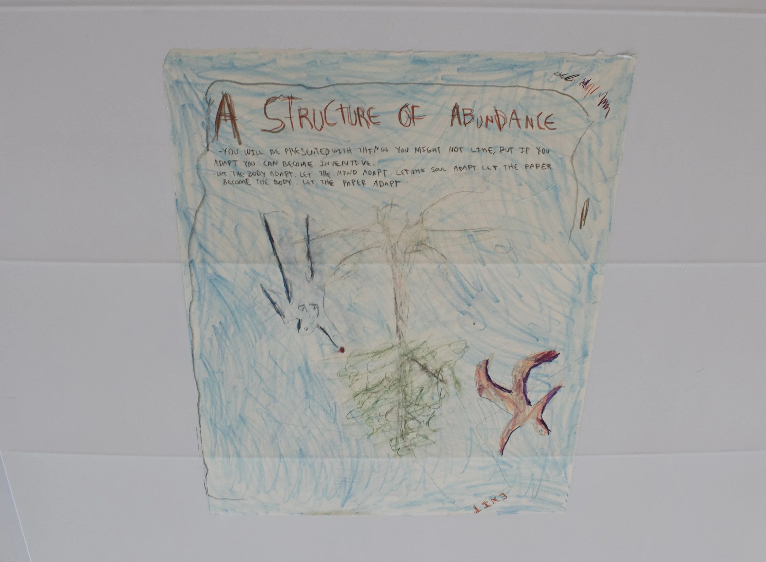 These projects share with the viewer what it means to practice abundance by using what you have, and not seeking outside for more or with a profit in mind. They show what is possible when you work fast, and when you slow down. Going fast can work if the goal is not to finish, but to allow exploration and surprises to happen. By slowing down and thinking about continuity, I realized paper, books, ideas, are the same as the body. In constant change. It is never finished, it is being and continuing. It maintains conversation, exploration, change, adaptation. The paper, the body, this structure is abundant, it will change over the next three years or more until is collected.