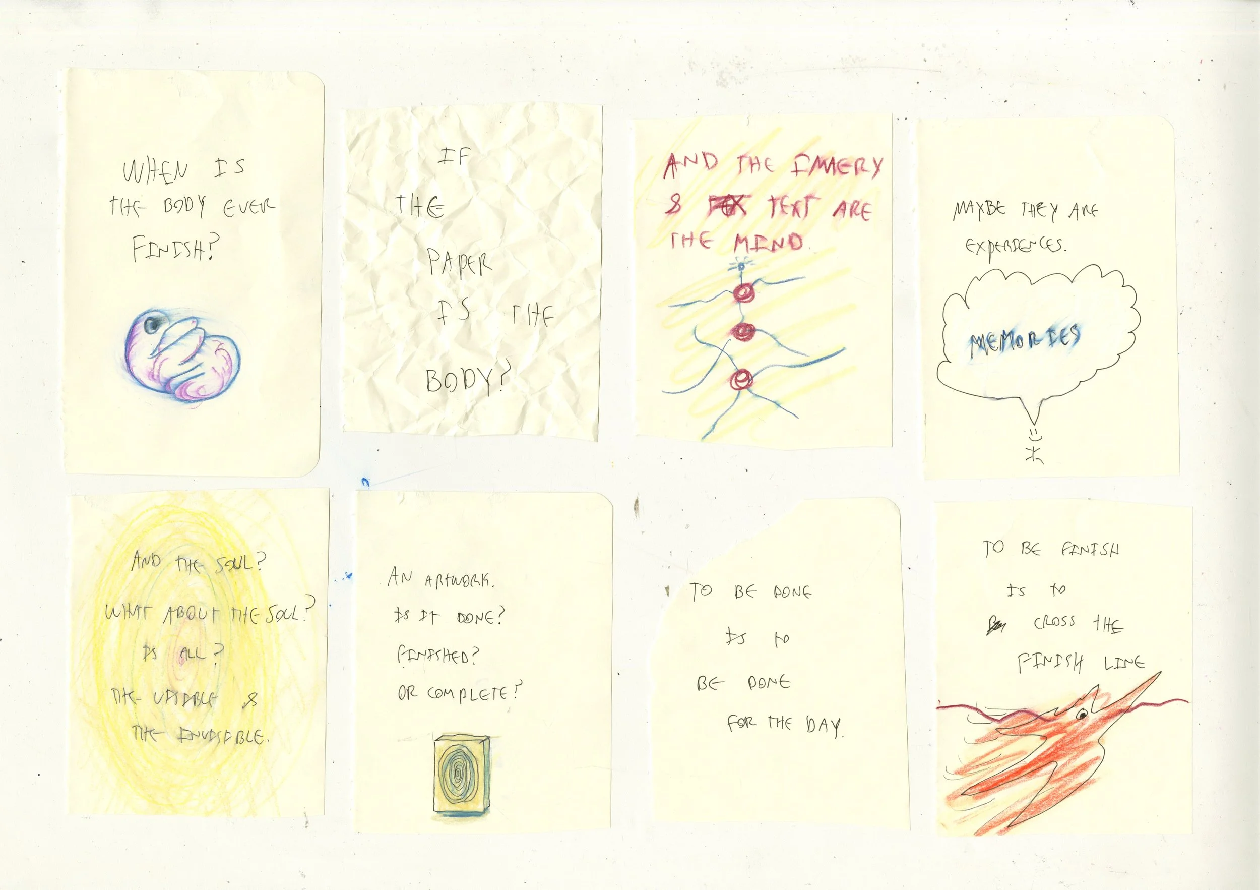 In this body of work I explored mental, physical, and spiritual transformation through the investigation of adaptation, abundance, speed and slowness, finishing vs completeness, and the body as paper. This investigation guided me to question what it means to finish an artwork and what it means to allow an artwork to continue. How the body is the same as paper, holding and sharing memories, ideas, experiences, information, but also adapting to its space. And how abundance presents itself consciously and subconsciously in the work when you activate the resources you already have. Wether the resources are mental, spiritual, or physical.